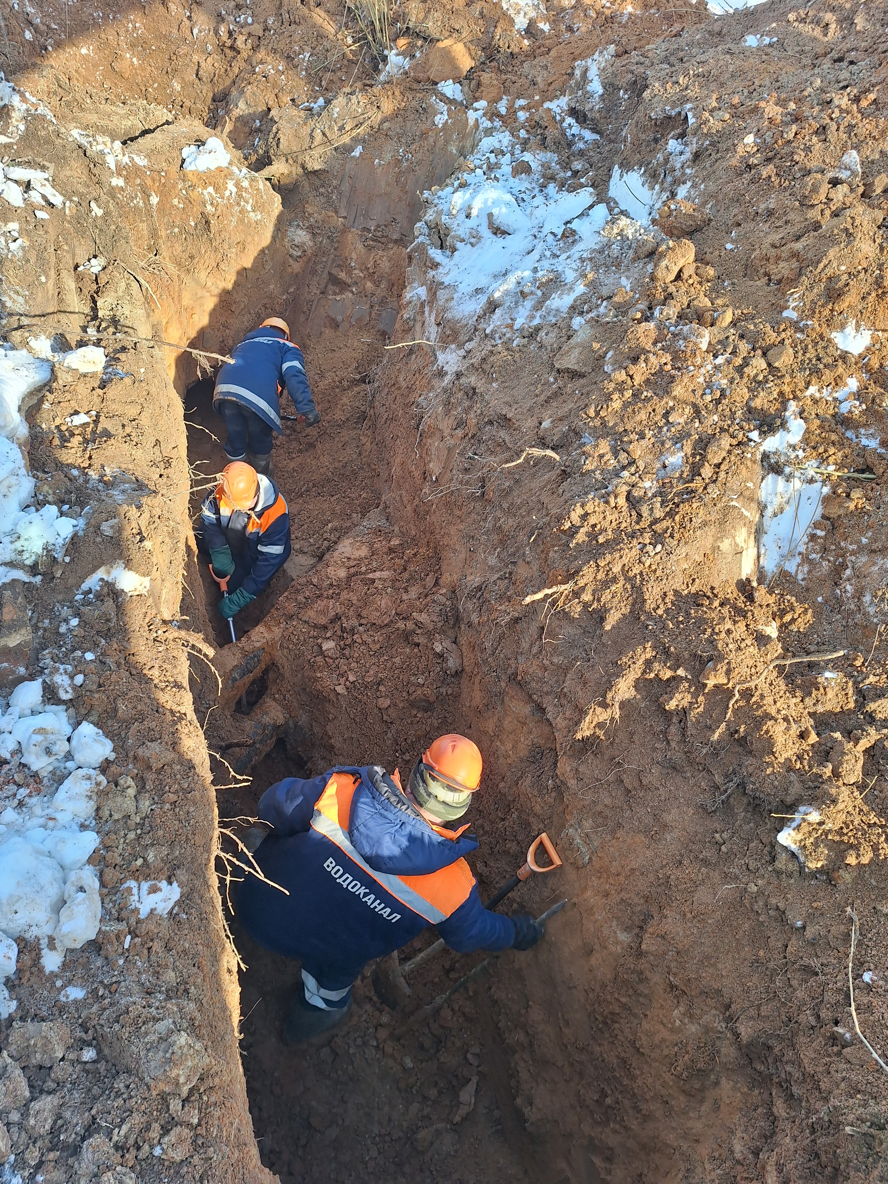 Посетив место стройки очистных сооружений, телевизионные команды и представители власти проехали на еще одну строительную площадку - на улице Льва Толстого, где также, в рамках проекта, идет перекладка напорной линии. Работа будет продолжена на улице Зиновьева. Отметим, что материал новых труб - высокопрочный чугун.